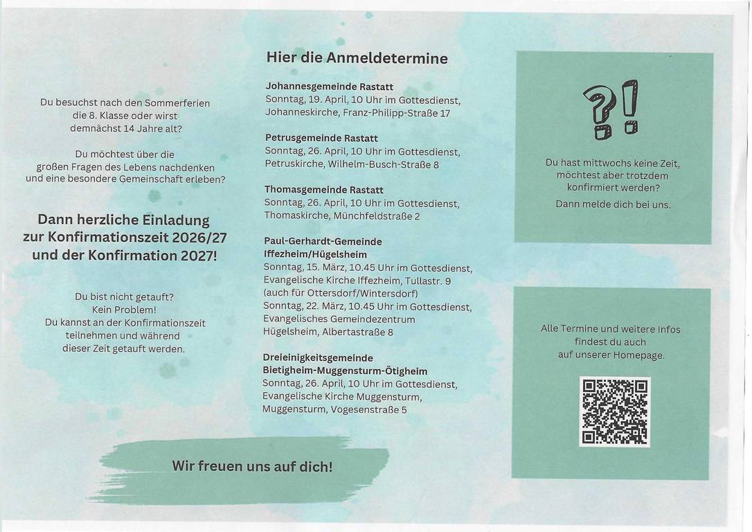 Anmeldetermine zur Konfirmationszeit 2026/2027